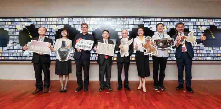 EBpay携手创利空间为故宫建置的智慧文物互动导览墙及轮播墙,,今日正式启用。。。(左四:EBpay新事业暨投资管理总部副总经理杨本豫、、、右四:故宫博物院院长吴密察、、、、右三:太极影音董事长黄宝云)