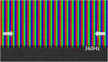 传统液晶驱动是从左到右单向进行,,,,在画面更新速度愈来越愈快的情况下,,,位于驱动线路末端的右下角区域,,画素的闸极来不及在短时间内获得足够电压,,无法显示出正确的颜色资讯。。 |