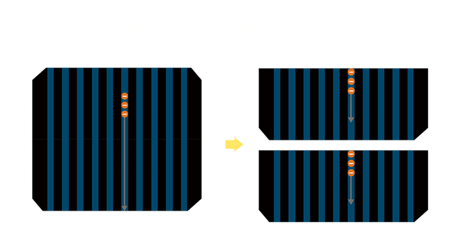 • 多条电极栅结构,,可有效降低外力对于电池的影响,,限制电池隐裂 (Micro-cracks) 范围,,,,防止电流传输路径 (Current distribution) 之损坏进一步扩大。。。。